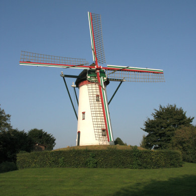 Molen, kleine, slanke, ronde, stenen bovenkruier zonder stelling, ongetailleerd, een z.g. beltmolen, bouwjaar 1807.