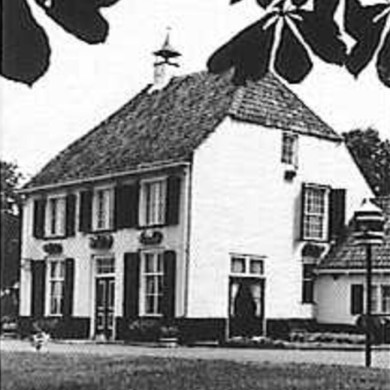 Witgepleisterd landhuis onder met pannen belegd wolfdak en met zesdelige schuiframen. Eind 18e eeuw.