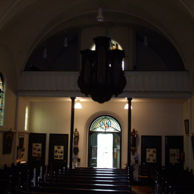 Hervormde Kerk. Classicistische zaalkerkje uit 1835 met torentje boven de voorgevel. Rijk gesneden midden 18e eeuwse preekstoel afkomstig uit de Engelse Kerk in Den Haag, met trap, ruggeschot; klankbord met vlampotten; doophek XVIII A. Eenklaviers mechanisch orgel, gemaakt door F.G.