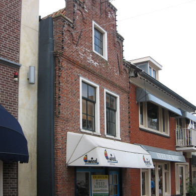 Gerestaureerd pand met mooie gevel, top vormend door middel van treden met klimmende pilasters en ingezwenkte contour. Gesneden deurkalf. Inwendig betimmeringen, tegelschouw, bedstede, enz. enz. Voor het pand twee stoeppalen.