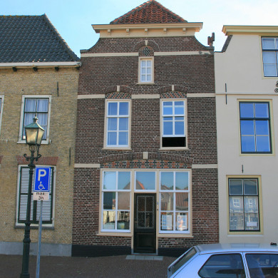 Pand met ingezwenkte lijstgevel, waarin wellicht nog restanten van de 17e eeuwse toestand aanwezig zullen zijn, bijvoorbeeld de boogvullingen van metselmozaïek. XVII-XIX.