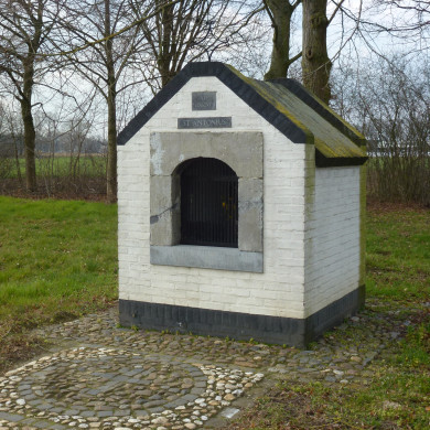 Gepleisterd bakstenen WEGKAPELLETJE ter ere van de H. Barbara, wellicht 19e eeuw.