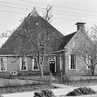 Binnenrust. Kop-hals-rompboerderij met niet onderkelder vooreind, gevat tussen twee topgevels, waarvan de voorgevel met diagonaal gemetselde lijsten op natuurstenen aanzetlijstjes. Twee topschoorstenen met pyramidevormige borden.