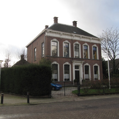 Uit ca. 1870 daterend, eclectisch, in schoonwerk opgetrokken, blokvormig pand met verdieping onder met pannen gedekt omlopend schilddak met hoekschoorstenen. In de met een forse kroonlijst versierd met cassetten, vierpasmotief, muizetandlijst en consoles afgesloten voorgevel in totaal 9 schuifvensters met stucwerkomlijsting en kuifstuk, een deur met bovenlicht voorzien van omlijsting, die is afgedekt met een kroonlijst op consoles. In de zijgevels en de achtergevel schuifvensters (deels nog T-vensters). Tegen de beide zijgevels -terugliggend t.o.v. de voorgevel en uitspringend t.o.v. de achtergevel - een uit de bouwtijd daterende aanbouw zonder verdieping onder met pannen gedekt schilddak en voorzien van schuifvensters.