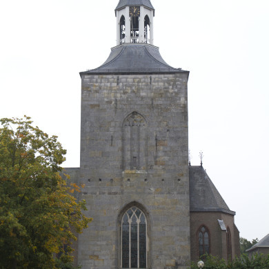 Behorende bij de Rooms-Katholieke kerk uit 1897. Een zware onvoltooide Bentheimerstenen toren zonder steunberen, uit de eerste helft van de 16e eeuw.