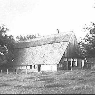 't Ribbert. Erve Veneklaas. Gedeeltelijk gerestaureerde boerderij met houten topgevel, ten noorden van de weg naar vasse.