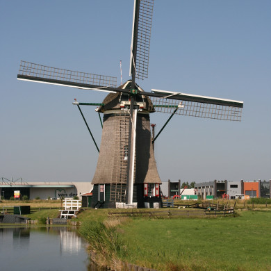Molen "de Kat". Houten poldermolen, de romp met riet gedekt. Herbouwd met onderdelen van een molen uit Haarlem na het verbranden van de vorige molen hier ter plaatse, die uit 1889 dateerde.