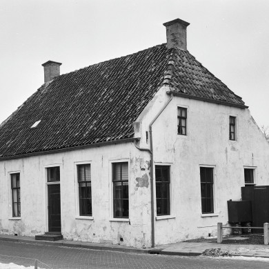 Landelijk PAND onder dwars zadeldak met wolfeinden; zesruitsvensters ook in de lichtopeningen voor de zolder.
