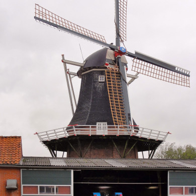 Molen de Onderneming. Achtkante bovenkruier met stelling gebouwd in 1858.