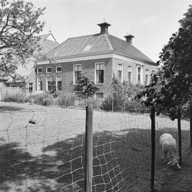 Zeer grote boerderij van het Oldambtstertype- onderkelderd voorhuis, drie vensters diep; boven de omlijste ingang drie volledige vensters; de voorgevel is afgesloten door een zeer forse kroonlijst met bloklijst. Schoorstenen met borden.