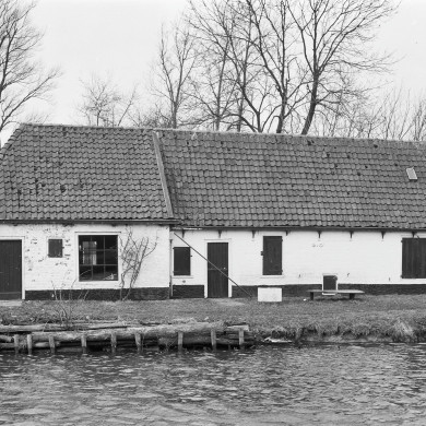 Woning onder schilddak met aanbouw onder eigen schilddak. Hierbij hoge schuur aan de waterzijde geheel met hout gedicht.
