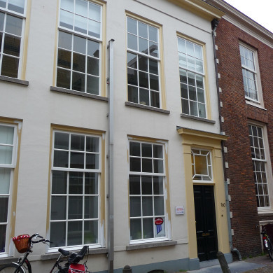 HOEKPAND Pieterskerkhof. "De Havelozeschool", fraaie natuurstenen geschilderde pilastergevel met op de 1e verdieping frontons boven de vensters, 18e eeuwse roedenverdeling in de vensters. Zadeldak; rechte kroonlijst met metopen.