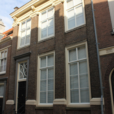 Pand met gevel met neo-classieke ornamentatie uit de eerste helft der 19e eeuw.