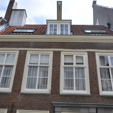 Pand met gevel met neo-classieke ornamentatie uit de eerste helft der 19e eeuw.