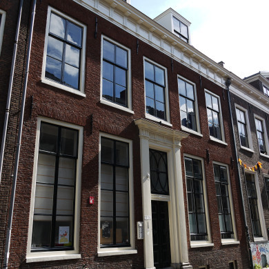 Pand met gevel met rechte kroonlijst met metopen versierde centrale deurpartij, einde 18e eeuw.