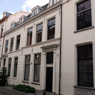 Zeventiende eeuws pand bestaande uit voorhuis van twee bouwlagen met lijstgevel met zadeldak evenwijdig aan de straat, gelegen op de hoek van de Jeruzalemstraat, waaraan een achterhuis met lijstgevel, bestaande uit twee bouwlagen met lessenaarsdak.
