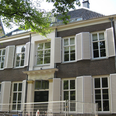 Statig herenhuis met zandstenen pilasters versierde, middenpartij gedekt door tympanon, rijke guirlandes, en boven de bovenvensters tympanen. Aan de Drift fraaie uitbouw, stijl van Campen, Anno 1648. Het gebouw strekt zich verder met v.m. koetshuis langs de Drift uit.