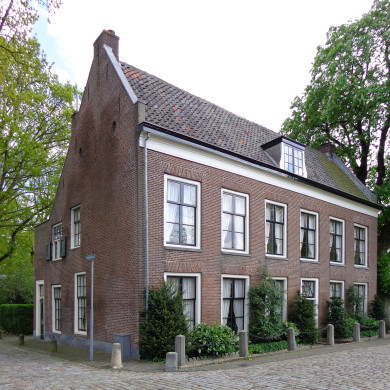 Herenhuis met rechte gevellijst en zadeldak in topgevels eindigend, 18e eeuw.