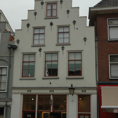 Een ondiep gaaf 17e eeuws huis bestaande uit twee bouwlagen, een kap en een kelder.