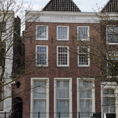 Pand met gepleisterde lijstgevel, 19e eeuws aanzien, van oudere oorsprong. Op de hoek van de Waterstraat.