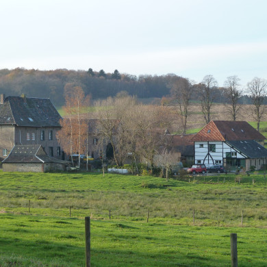 HOEVE bestaande uit een bakstenen woning, 1842, waarop rechts een ouder vakwerkgedeelte aansluit; haaks hierop links een losstaande grotendeels uit vakwerk opgetrokken schuur, XVIII-XIX, en rechts een kleiner eveneens losstaand vakwerkgebouw, XVIII.