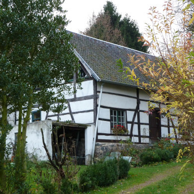 Huis van vakwerk, XVIII-XIX, van belang door ligging tegenover oude kerk. Witgeverfd.