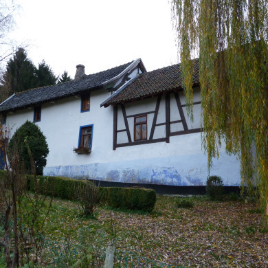Huis van vakwerk, XVIII-XIX, van belang door ligging tegenover oude kerk. Witgeverfd.