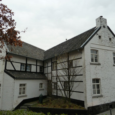 Hoeve van breuksteen en vakwerk met geschoord dakoverstek, XVII.