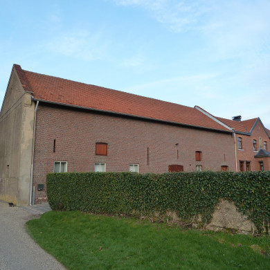 Hoeve van baksteen, XVIII, gelegen aan een binnenplaats. Tussendorpelkozijnen en ingang van Naamse steen. Deel uitmakend van het complex, hoeve Weyerhof.