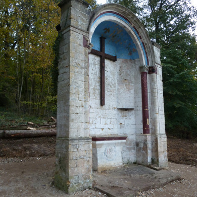 In het Smallenbosch een niskapel van mergel, XIX A, hersteld 1939; in de vorm van een rondboog op bundel zuilen, bekroond met siervazen; calvarie. Vroeger stond in de nabijheid een kluis, die werd afgebroken na de dood van de laatste kluizenaar in 1825.