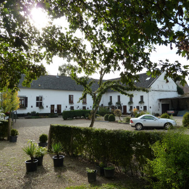 Hoeve met binnenplaats, van mergel; op poortsluitsteen 1803. Tuinmuur en hekpijlers met vazen.