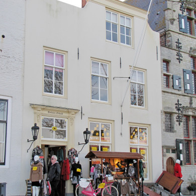 Pand genaamd 't Bordeaux Oxhooft. Huis met gepleisterde lijstgevel, aan de hoeken ingezwenkt en links een overbouwde gang. Voordeuromlijsting met rococo-consoles, geprofileerd kalf en rozet-bovenlicht. Kelderluik, XVIII-XVII.
