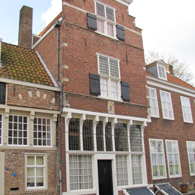 Huis met lichtgevel, aan de hoeken ingezwenkt. Rozetbovenlicht. XVII-XVIII.