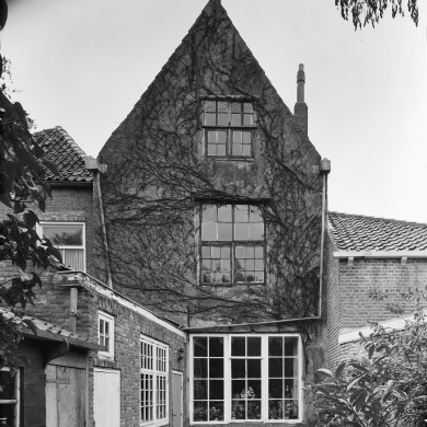 Pand genaamd Prinsche van Oranien. Huis met rechte gevel en eenvoudige voordeuromlijsting met rozet bovenlicht. XVIII. Gerestaureerd.