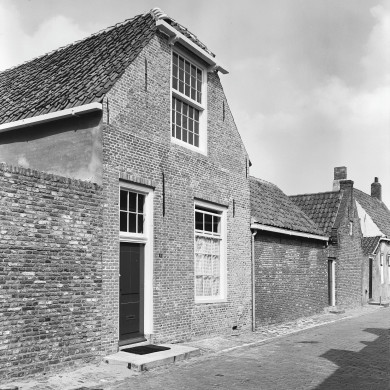 Huis me afgeknotte puntgevel. Vensters met roedenverdeling. XVIII.