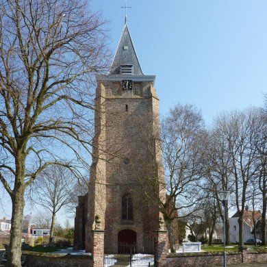 De Ned. Herv. Kerk. Eenbeukig 15e eeuws bakstenen schip zonder koor. Spitsboogvensters. Ingangspoortje aan de noordzijde. Eikehouten preekstoel (1661). Grote zerk van Philibert van Tuyll van Serooskerke en V.M. van Swieten (1629).