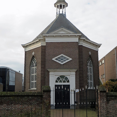 N.H.Kerk. Langwerpig achtkant zaalgebouw, door geblokte pilasters versterkt, met dakruiter, spitsboogvensters, fronton op de voorgevel, ingang met gecanneleerde pilasters en kroonlijst. Eerste kwart 19e eeuw. 18e eeuwse eiken kansel met koperen doopbekkenhouder en lezenaar; 19e eeuws orgelfront.