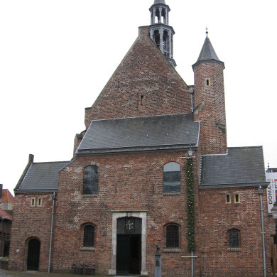 Laatgotische driezijdig gesloten kapel, XVd, van het voormalige Augustinessenklooster Mariaweide, gerestaureerd en met twee lage zijbeuken en een voorbouw met traptoren vergroot in 1955-'56; inwendig westelijke tribune over twee traveeën, in 1955-'56 gereconstrueerd aan de hand van gevonden sporen.