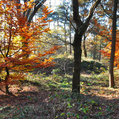 Landweer; overblijfselen van minstens 15e eeuwse grens- en verdedigingswallen, bestaande uit een in een boog gelegen aarden wal die op het onderhavige kadastrale perceel een lengte heeft van ca. 40 m, een breedte van ca. 10 m en een hoogte van ca. 1,20 m.