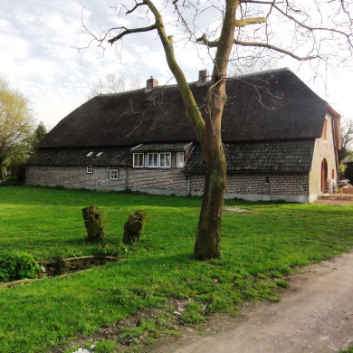 Groot hallehuis onder een met stro bedekt wolfdak, XVIII-XIX A. Grote schaapskooi eveneens onder een strodak, XVIII-XIX.