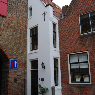 HOEKPAND Voorstraat. Huis met schilddak (XVIII ?) en gepleisterde lijstgevels.