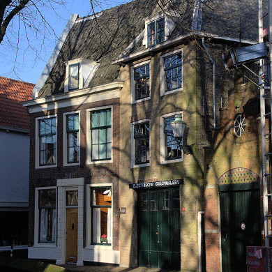 Aan de Smalle Havenstraat (nr 23) een vleugel met afgeknotte topgevel en hijsvenster met luiken.
