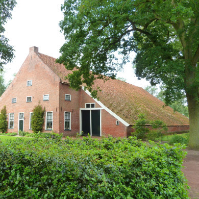 Grote boerderij van het late Westerwoldse type met omlijste ingang opzij en volledig venster op de zolder aan de voorgevel. Zesruitsvensters in de beganegrond. Kroonlijsten aan zijgevels en voorgevel, waarboven dakschild met topschoorsteen.