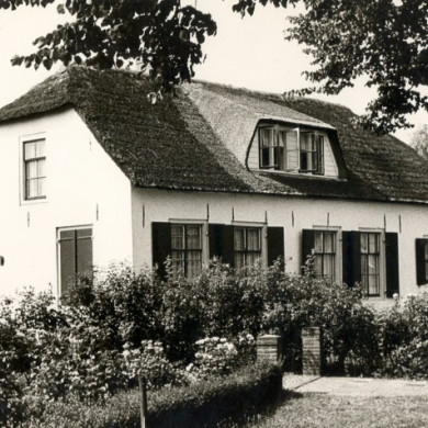 Boerderij, gepleisterd langhuis, afgewolfde topgevel, met riet gedekt, 18e eeuw.
