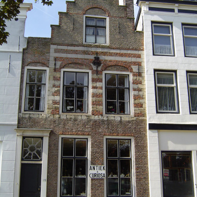 HUIS met gepleisterde lijstgevel. De lijst voorzien van vijf consoles. Dakkapel. Eenvoudige voordeuromlijsting, stoeptreden. Waterlijsten, gevelsteen met inscriptie (1624. "DE T IS IN HET OUDE HERDT"). In Hellebaardierstraat gepleisterde langsgevel met gootlijst op klosjes, pothuis.