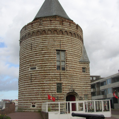 GEVANGENTOREN. Ronde, aan de zeekant opgetrokken poorttoren, daterend uit omstreeks 1491 en oorspronkelijk één van de torens van de in 1811 door de Fransen gesloopte Westpoort. Baksteen in de buitenbekleding, afgewisseld met lagen natuursteen. Vrij ingrijpend gerestaureerd in 1894; zwaar beschadigd in de Tweede Wereldoorlog; omstreeks 1960 opnieuw gerestaureerd, waarbij de top met tentvormige bekapping naar oude tekeningen is teruggebracht en in verband met een nieuwe bestemming enige hardstenen kruisvensters zijn aangebracht. Aan de voet van de toren bevindt zich het Gevangenhuisbolwerk of Bastion XIII, dat deel uitmaakt van de Vlissingse zeeversterkingen (separaat monumentnummer).