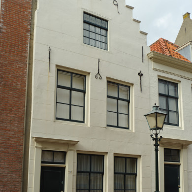 Pand bestaat uit twee huizen achter een gepleisterde lijstgevel uit het derde kwart 19e eeuw. Het oostelijke huis heeft een zadeldak tussen puntgevels en dateert uit de 17e eeuw. Het westelijke huis heeft een zadeldak, dat aan de westzijde aansluit tegen een puntgevel, 17e eeuw. Nr.