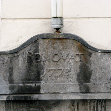 Huis met XIXc gepleisterde lijstgevel. Het fries van de lijst voorzien van panelen en consoles. Moderne winkelpui. XVIII-XIX.