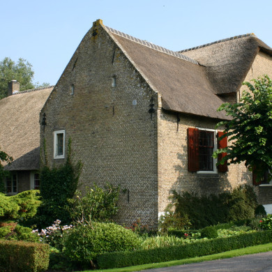 Mooie, IJsselstenen HOEVE (XVII) met ontlastingsbogen en op de rechter zijgevel een puntgevel met vlechtingen, driepasmotief, rode ontlastingsboog en ankers. De vensters hebben een roedenverdeling in stijl ca. 1800. Gestoken deurkalf. Het bedrijfsgedeelte is gewijzigd.
