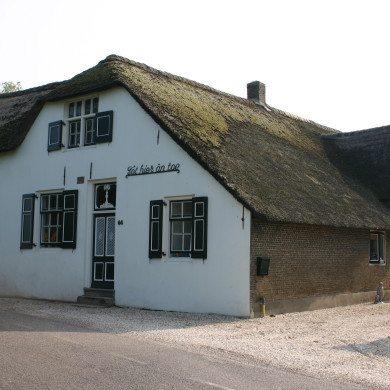 Mooie BOERDERIJ (XVII?) onder strodak, opgetrokken van IJsselsteen. De voorgevel heeft nog de oude kozijnen en een 18e eeuwse roedenverdeling. Zijvleugel met puntgevel, voorzien van vlechtingen en ankers.